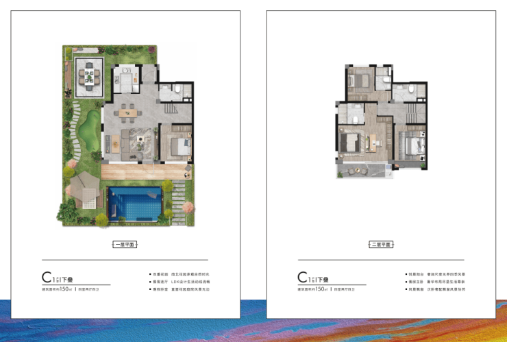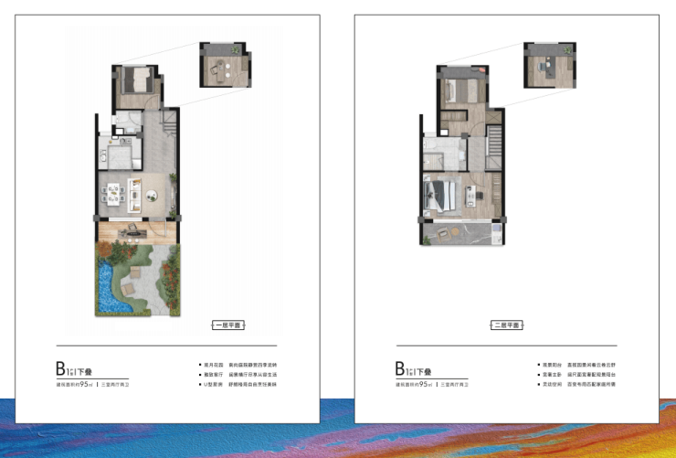 上叠点睛之笔是双南阳台+一楼北侧花园+露台。上叠一二楼均配有阳台,能更好接近大自然。更厉害的是一楼北侧还有花园,这在市面上非常少见,增加活动空间的同时也让上叠更加“接地气”。