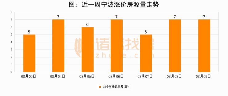 根据诸葛找房数据显示,宁波24小时涨价房源量为7套,较08月08日持平。