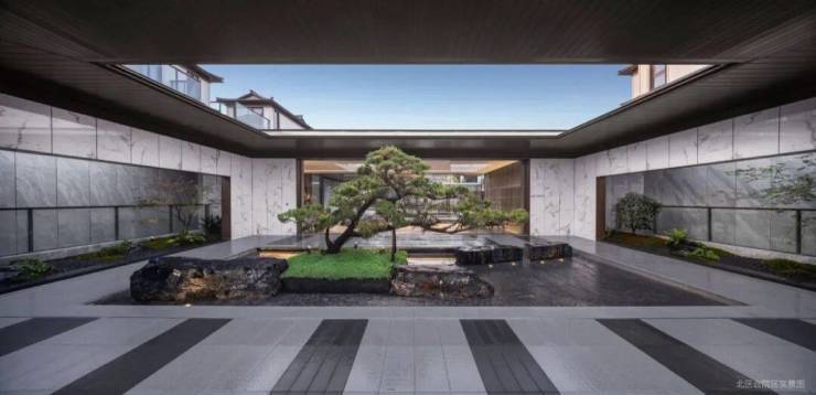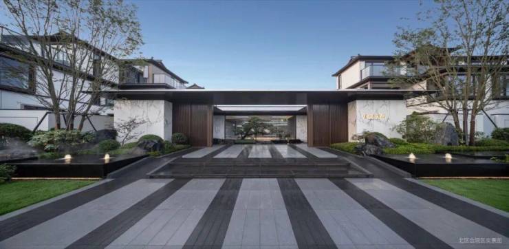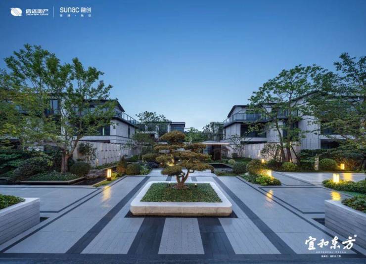 以宋代传奇名画 《西园雅集图》为设计蓝本,借鉴卡洛·斯卡帕的设计手法,通过诗意表达与精美细部,合院入园区域打造三进院落、四重景观、双中央水院与亭台水榭等当代江南名园胜景,举步之间,礼制家仪,气象万干。