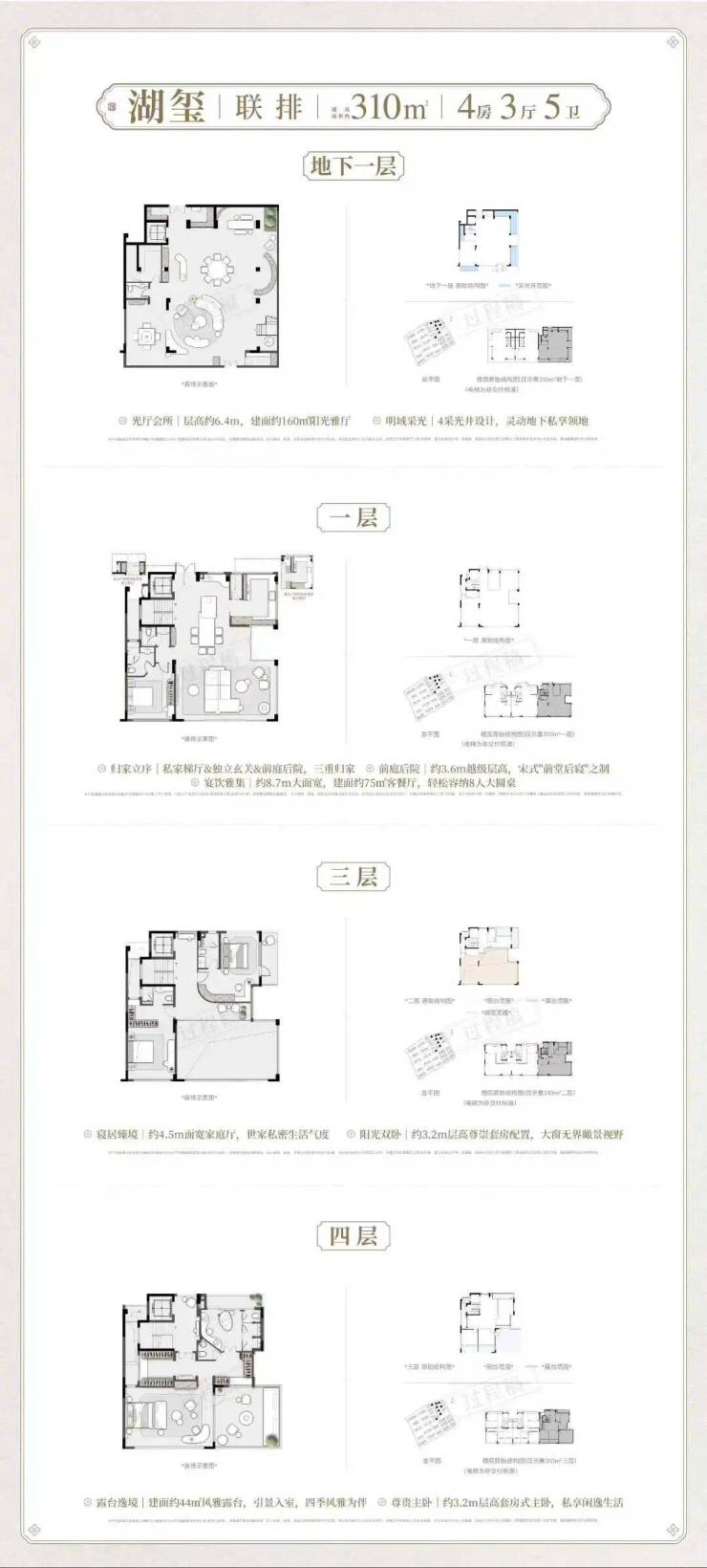 1.25超低容积率,淬炼出建发·瑞湖建面约185-205㎡藏品叠墅、建面约255-308㎡传世联排产品形态。