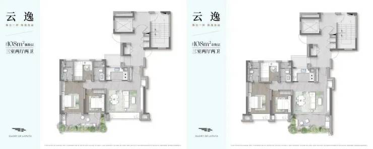 108平米的四代住宅 •108㎡ 云逸 | 三室两厅两卫 户型图