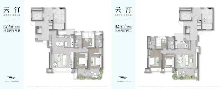 129平米四代住宅•129㎡ 云汀 | 三室两厅两卫户型图