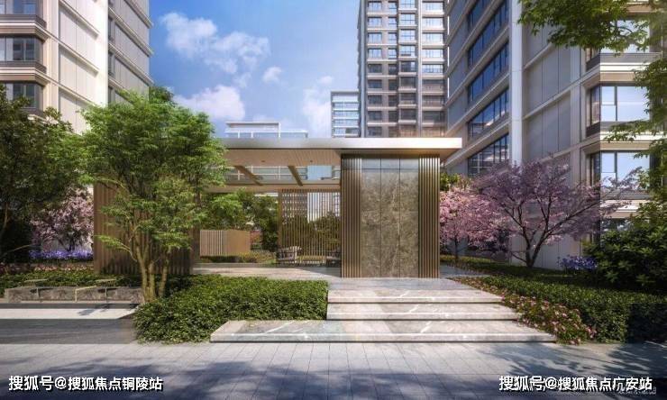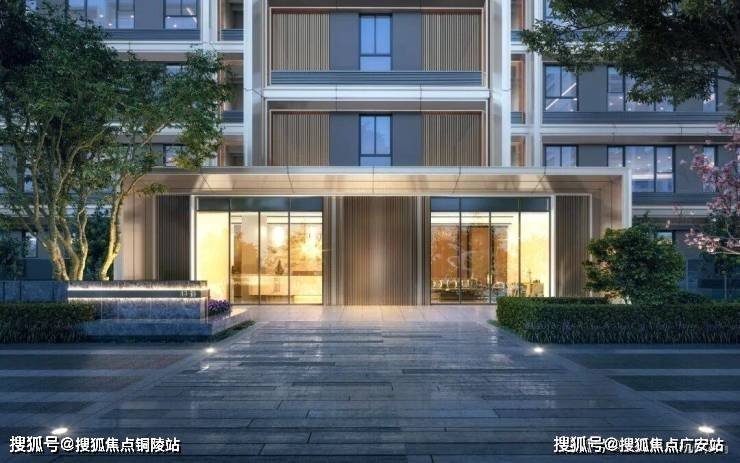 尺度大气的现代风格门头,入口展现艺术水苑、叠水瀑布以及层级绿化,彰显归家仪式感。