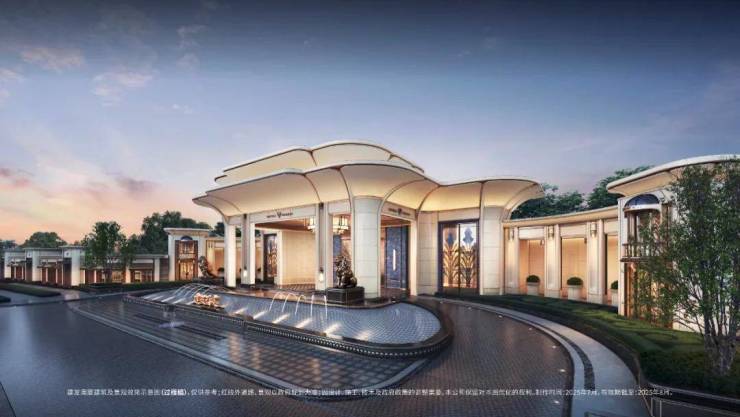 「玉兰门庭」摩登飘逸,环抱式落客前场,大师定制非遗掐丝珐琅门钹,流转温润光华,敬呈归家尊崇礼序,自此启幕生活的华贵序章。