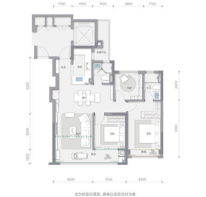 看似是经典的四房边厅户型,其实也做了迭代