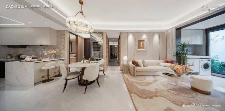 正是这种 "空间感 + 功能性 + 品质感" 的三重叠加,让建发云湖玥99㎡户型的客餐厨空间,不仅超越了同面积段的所有竞品,甚至比很多110㎡的户型还要好用、还要舒服。