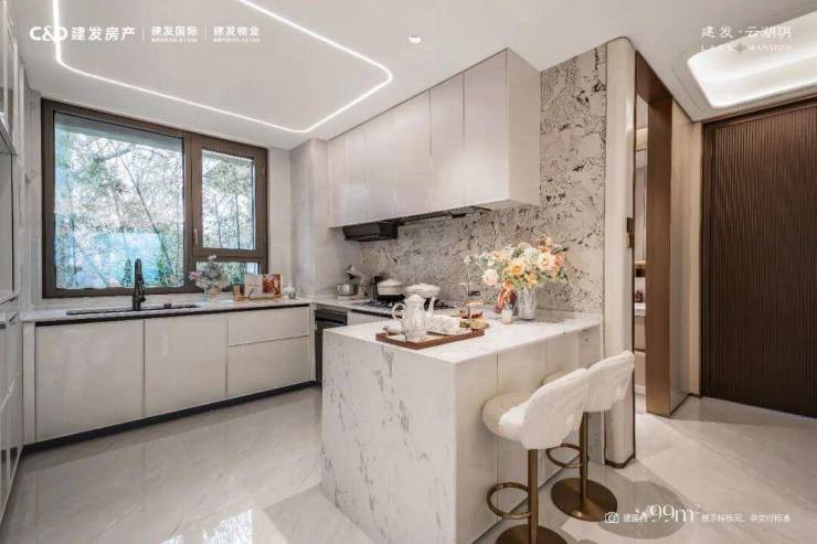 配置了只有市区大面积豪宅才有的八百库、厨房岛台、带上下水的餐边柜。