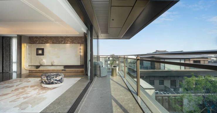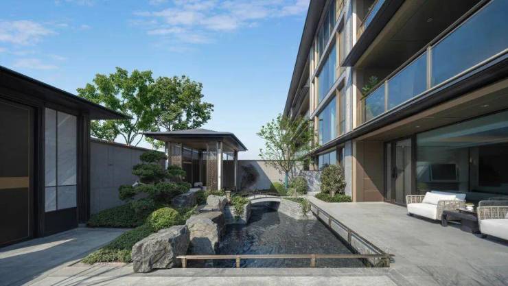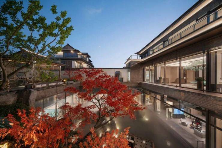 屋脊、檐口以现代构成手法凝练重塑,线条利落大气,既保留中式建筑的风骨,又契合当代审美,于传统与现代之间,寻得极致平衡。