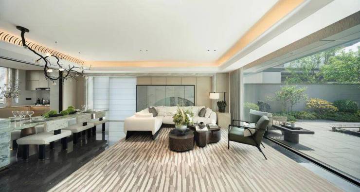 一层是会客区,超10米南向全景面宽,将窗外景观更大化引入室内。