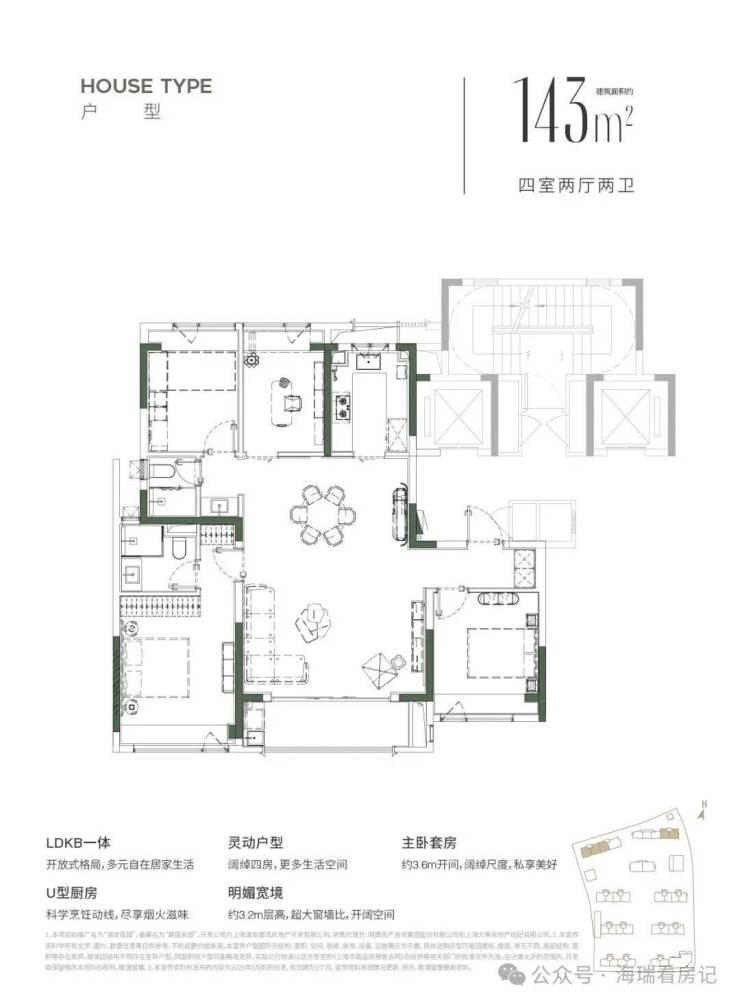 4房:建面约143㎡4房、193㎡4+1房