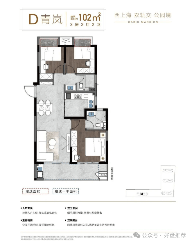 专属权益:预约成功即可尊享①一对一专属置业顾问全程接待,详解项目规划、房源、户型、价格及购房政策;②市区内定点免费专车接送看房。