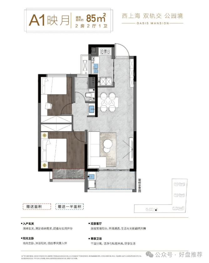 85㎡户型:约127.5–128万元/套