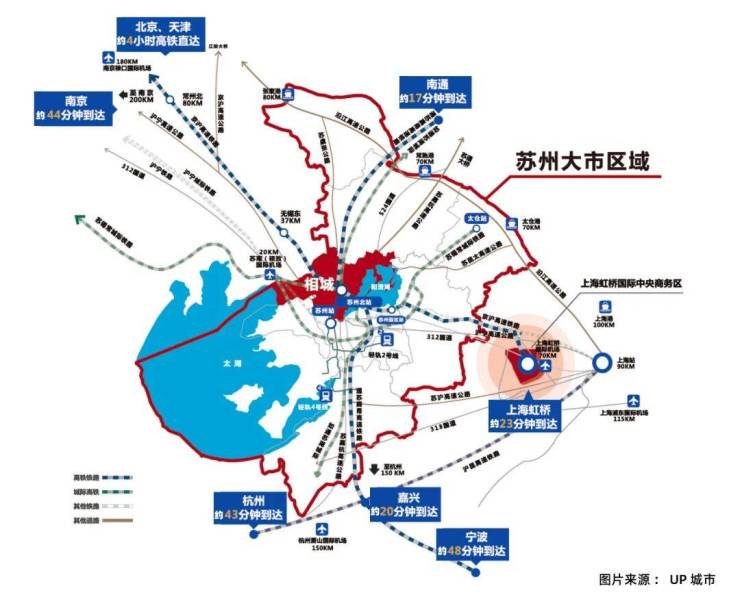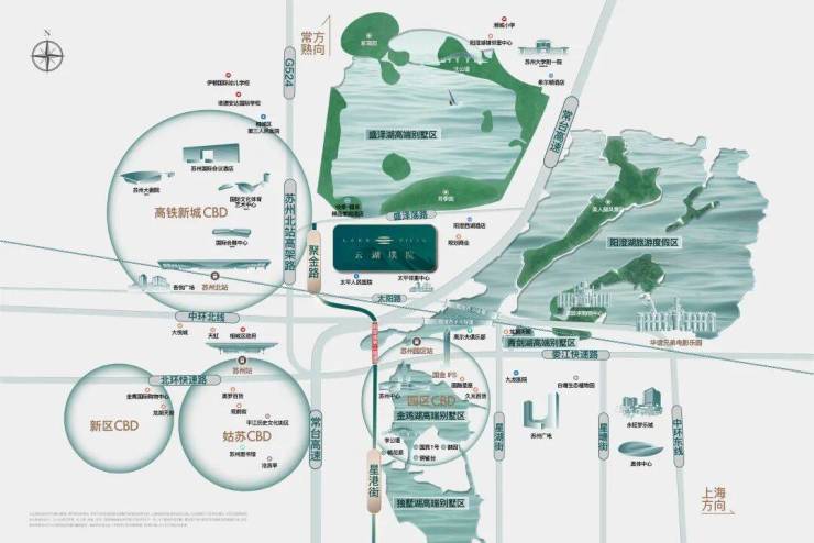 自驾:紧邻阳澄湖第三隧道(在建),直达园区核心;春申湖快速路、苏州北站高架环伺