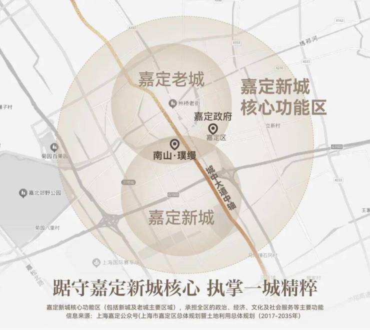 南山璞缦的占位,可以用四个字来概括:城市中轴!每一个伟大的板块,都有一条黄金主轴! 无论是巴黎的香榭丽舍大街,纽约中央公园,还是北京长安街、浦东的世纪大道...这些黄金主轴无一例外地集中了这座城市最顶配的产业资源、文化资源和交通资源,同时,也是这些世界名城的豪宅最为集中的地段!而在嘉定,主轴只有一条:城中路-沪宜公路-嘉闵高架组成的烫金主轴。