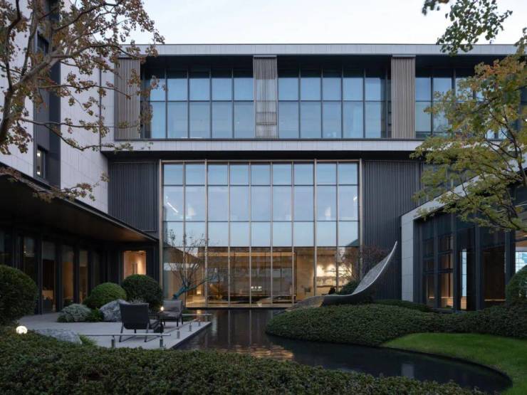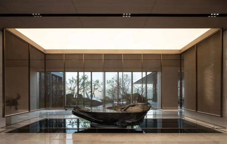 △ 假山雕塑,与景观交映成趣,阳光折射,动静变幻为空间带来灵动的视觉体验。
