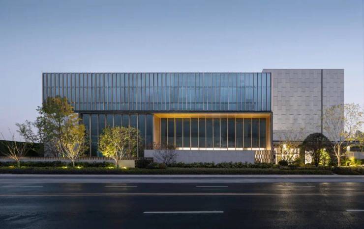 前场风格简约的归家界面,金属线性格栅与通透玻璃打造酒店式的尊贵落客体验。多重的高矮景墙,围合引导客流进入归家大堂。运用自然元素,在一草一木、一静一动中书写诗意空间。