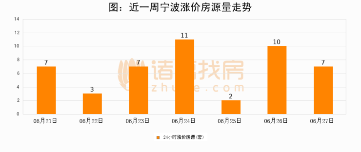 根据诸葛找房数据显示,宁波24小时涨价房源量为7套,较06月26日减少3套,环比下降30%。与此同时,涨价房源占比小幅回落,对于购房者来说是一个入市窗口期,购房者可抓住时机入市。