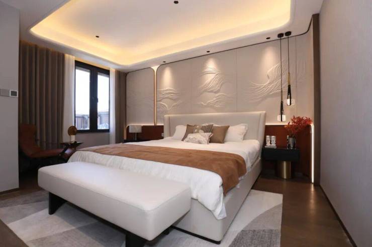 三层称得上是主人独立的“休憩行宫”了,一整层都是主卧!就寝区、衣帽间、卫浴间应有尽有,而且尺度还很舒适。