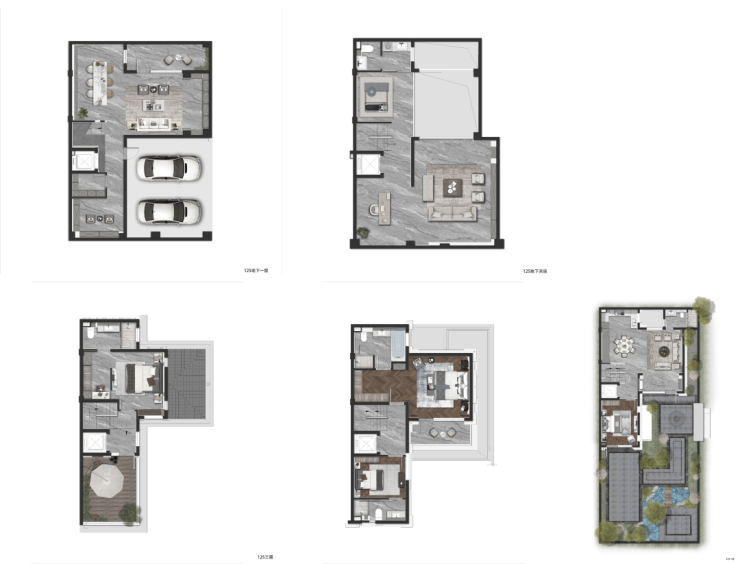 约125㎡的明星户型做到了5套房设计,地下一层、地上三层的空间形态,将空间尺度无限放大。