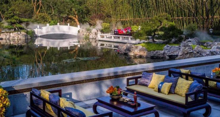 一脉主轴「江风海韵」贯穿园中十景,移步异景,获山川之怡,得林泉之趣,贤礼五街,取意儒家五常之道,家与家比邻而兴,人与人知己相交,致力于倡导当代君子的修齐治平。静美八园,古雅十二巷,天地相和,纵怀游心,营造中国文人的雅趣生活场景。