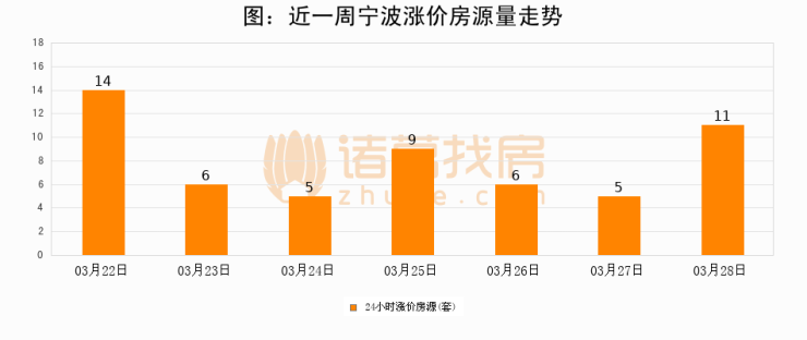 根据诸葛找房数据显示,宁波24小时涨价房源量为11套,较03月27日增加6套,环比上涨120%。与此同时,涨价房源占比小幅扩大,业主信心有所提升。