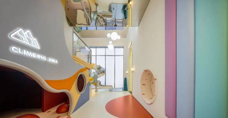 架空层层高约7.2米,远超常规的4-5米,甚至比安琪儿豪宅的架空层还高。泛会所空间引入健身房、会客厅、书吧,童玩区更请来奈尔宝原班团队操刀。杭州住宅都在狂卷童玩区,但“纯血奈尔宝”依然凤毛麟角。