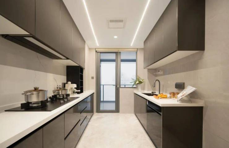 16项厨卫系统中,标配方太全隐升降款油烟机、三眼灶、15件套洗碗机。顶上有奥普凉霸,灶台有岩板背景墙,不只实用,还细致关照厨房的“清洁动线”。