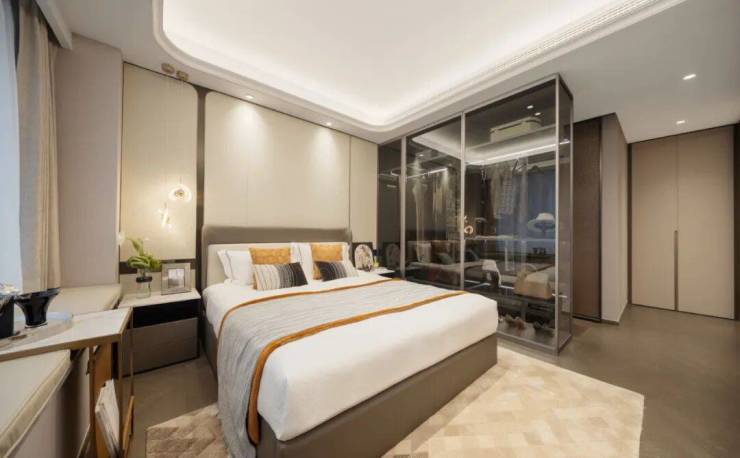 虽然体量不大,却舍得铺排气场。它定制了璞丽酒店式的长廊门庭,别的楼盘在拼门头宽度,它在营造归家的“纵深仪式感”。