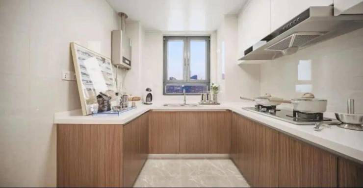 厨房采光面大且正对餐厅,东线布局合理,厨房U形布局使用率高;