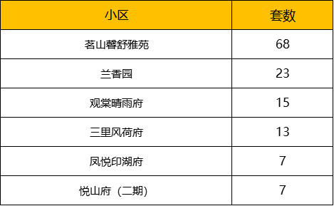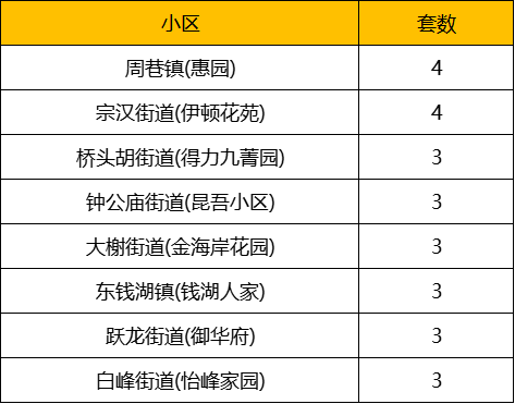 其中周巷镇(惠园)、宗汉街道(伊顿花苑)各成交4套,位列榜首。