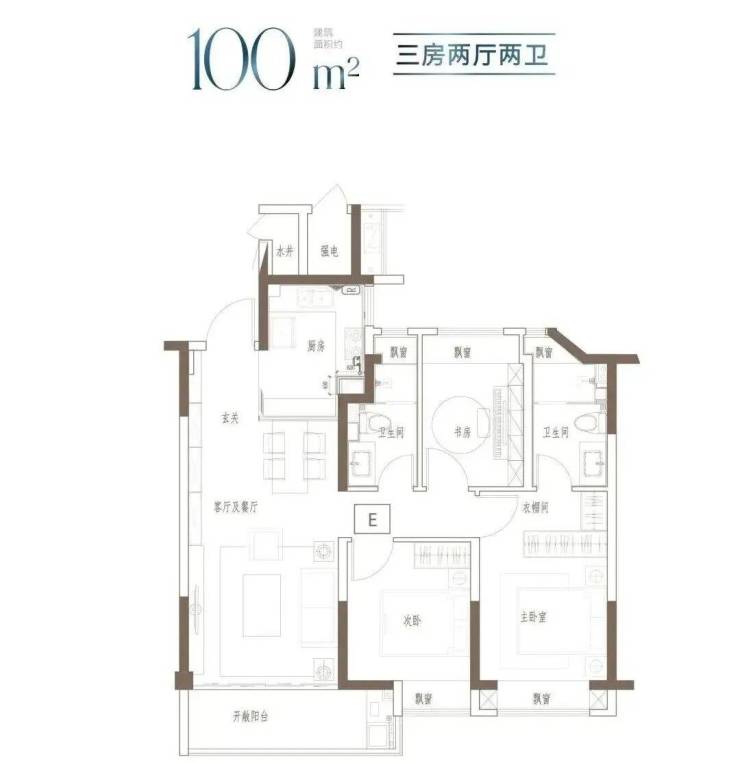 91-100㎡ 3 房 2 厅 2 卫:主流改善,南北通透,动静分区