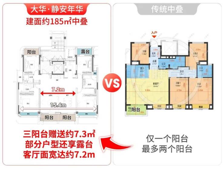 中叠平层面宽更达到惊人的约15.4米,优于常规约13米的水准,采光与视野全面领先。