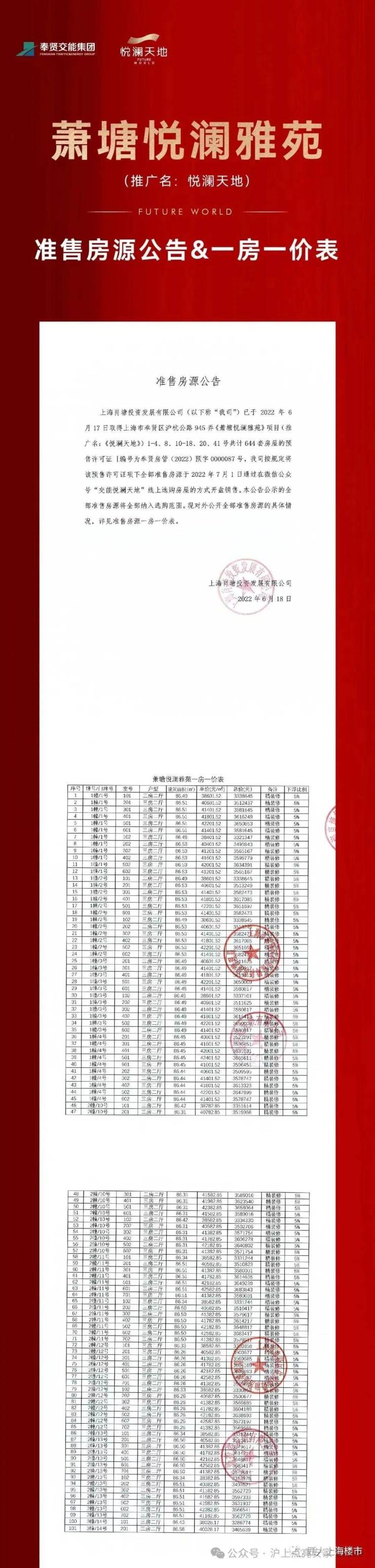 奉贤萧塘地铁站旁,5号线萧塘站直线距离约200米,滨江南 TOD生态住区【悦澜天地】一房一价表