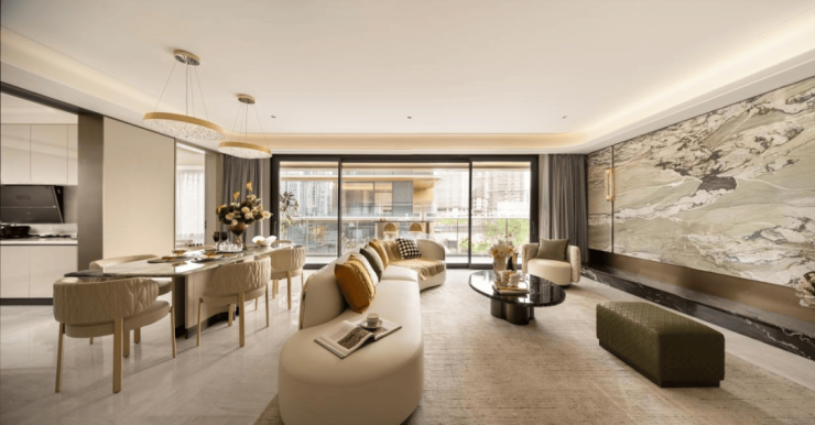 得益于约90%的高得房率,建面约210㎡户型空间五房设计。南向面宽约11.75米,三卧朝南;更创新打造广角“X厅”,与LDKB一体化客厅无界相连,从太太的插花、先生的茶室,家庭生活场景有了无限可能。