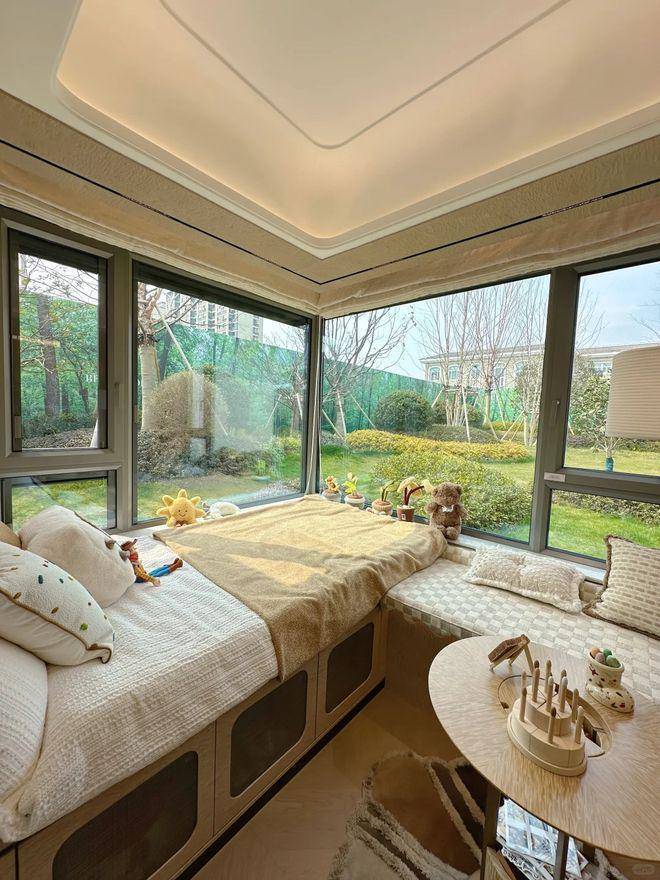 建面约 108㎡三房两厅两卫:爆款进阶户型,创新三阳台 + 三景观花池设计,附赠空间约 26㎡,客餐厅一体化搭配 270° 无柱转角飘窗,视野开阔、采光充足,空间灵动可改造,总价约 670-800 万。