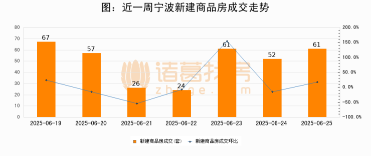【宁波成交日报】06月25日新房成交61套;涨价房源2套