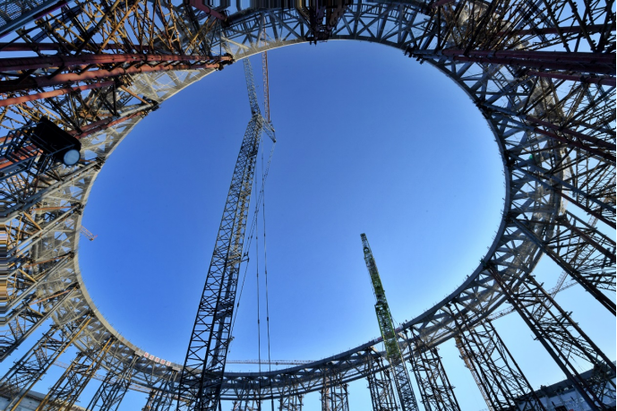 1月10日,工体足球场主体钢结构内环桁架顺利合拢。图片来源 中赫工体供图