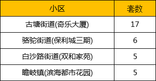 其中古塘街道(奇乐大厦)成交17套,位列榜首。