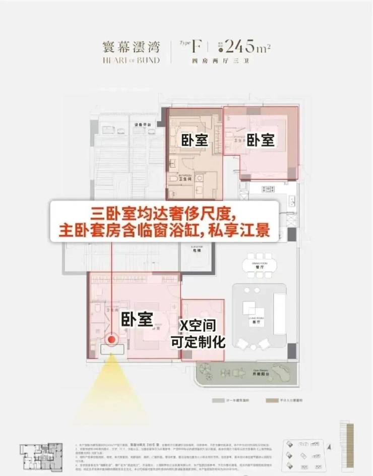 三卧全尺度奢适,主卧临窗浴缸瞰江!