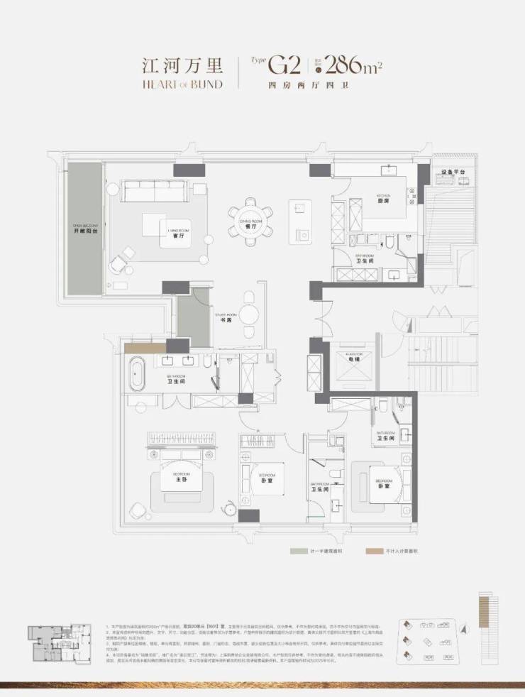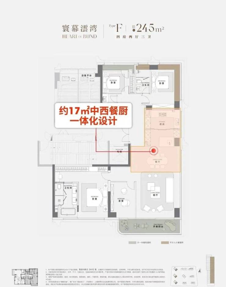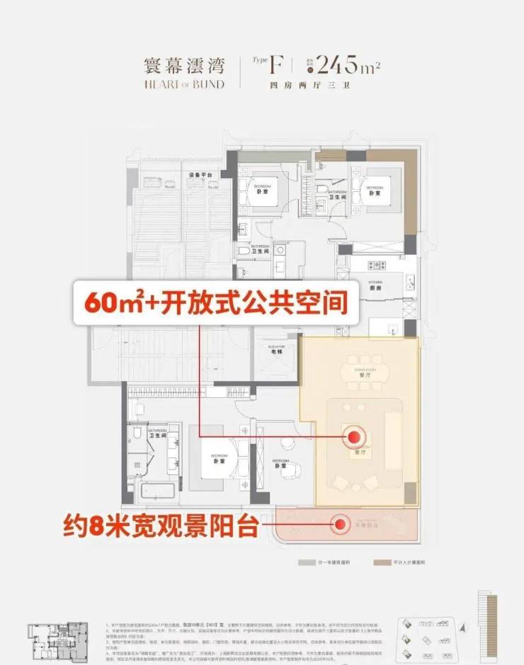超过60平米的开放式空间(客厅、餐厅、X空间、阳台一体化),功能灵活,可满足大型派对或家庭休闲,尺度感直接媲美原来350㎡的滨江户型!