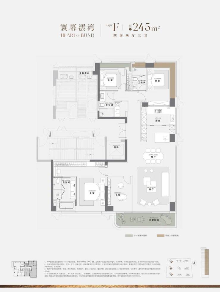 我们具体来看建面约245㎡4房户型: