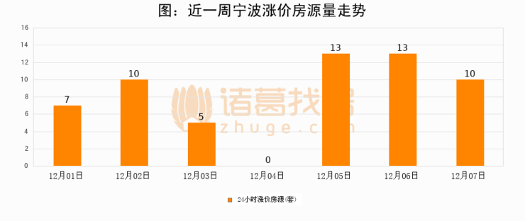根据诸葛找房数据显示,宁波24小时涨价房源量为10套,较12月06日减少3套,环比下降23.1%。与此同时,涨价房源占比小幅回落,对于购房者来说是一个入市窗口期,购房者可抓住时机入市。