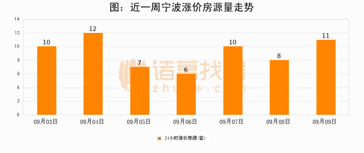 根据诸葛找房数据显示,宁波24小时涨价房源量为11套,较09月08日增加3套,环比上涨37.5%。与此同时,涨价房源占比小幅扩大,业主信心有所提升。