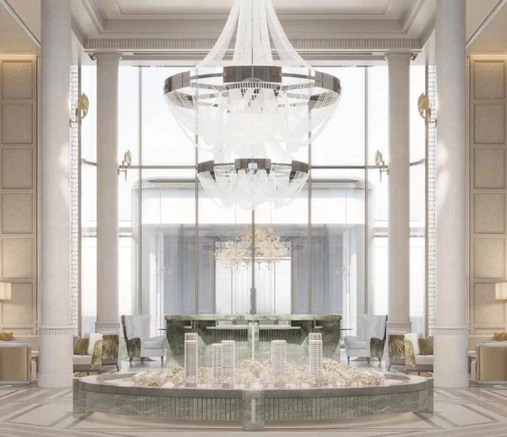 基座更是采用大面积石材搭配艺术玻璃及古铜色金属窗框,辅以奢石、艺术等点缀,从上到下,处处皆是奢华质感。