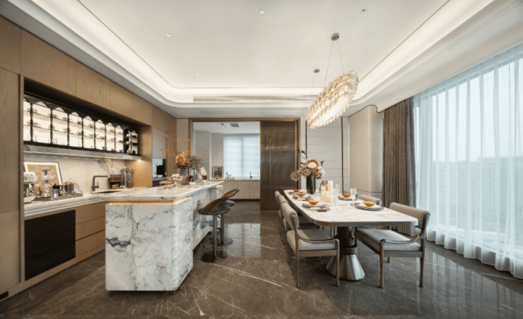 人间烟火气,最抚凡人心。绿城·凤咏朝阳让这缕烟火,升腾出精致与温馨。中西双厨的巧妙布局,是生活仪式的完美起点。西厨区一座360°环形复合功能岛台,不仅是料理的操作中心,更成为家庭的社交枢纽。清晨的咖啡、午后的甜点、晚间的轻食,皆可在此从容完成。
