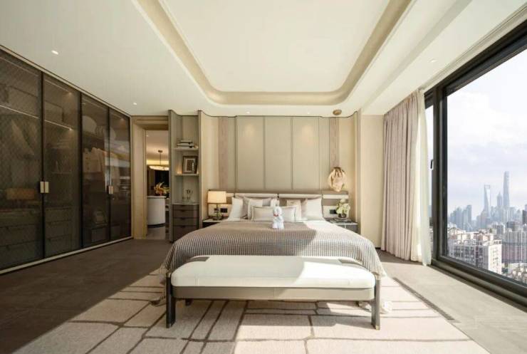 空间以总统套房级规制,将尺度、奢装、智能与仪式感拉满,融合金茂五舒十二大科技系统与顶奢品牌配置,定义内环内奢居天花板。