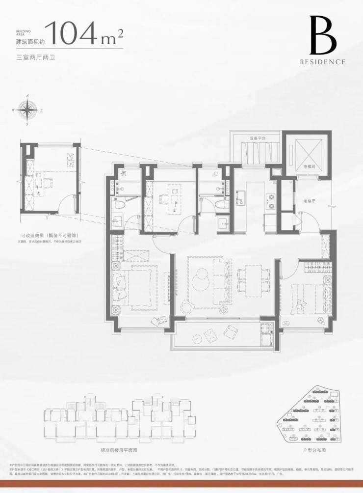三居室:约96㎡、104㎡(主力户型)