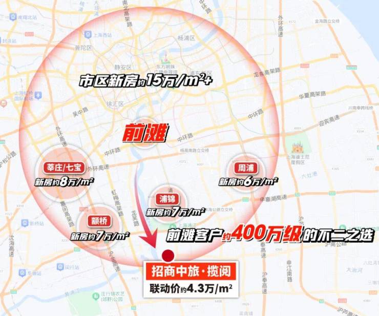 先来看地段,整个上海约400万级的楼市中:招商中旅·揽阅的地段价值,遥遥领先。