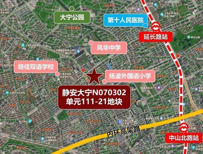 生态休闲:地块北侧约1公里是大宁公园,东侧约1.3公里是闸北公园;还有上海马戏城、大宁剧院、静安体育中心等休闲场所。