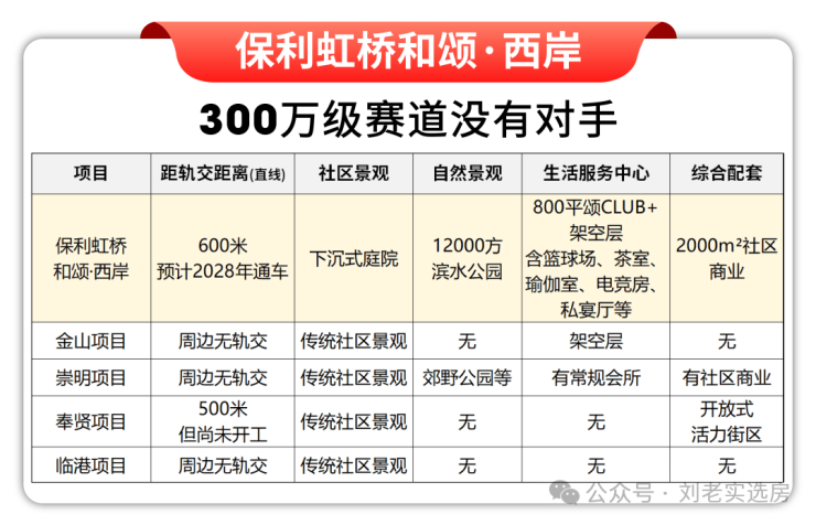 而保利虹桥和颂·西岸,3房起步仅300万级,改善4房500万级,与周边区域相比,无疑处于价格洼地!🗝️